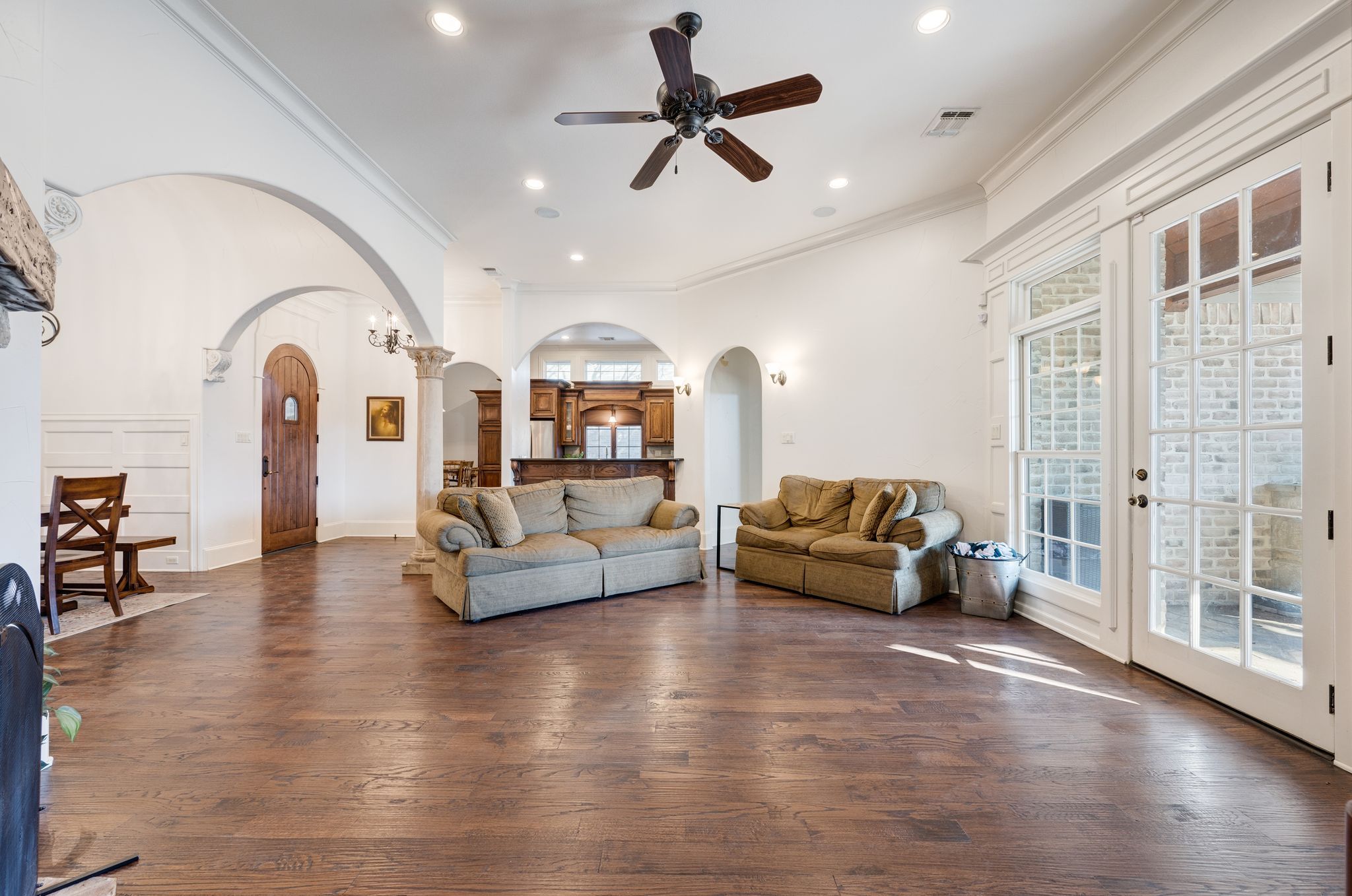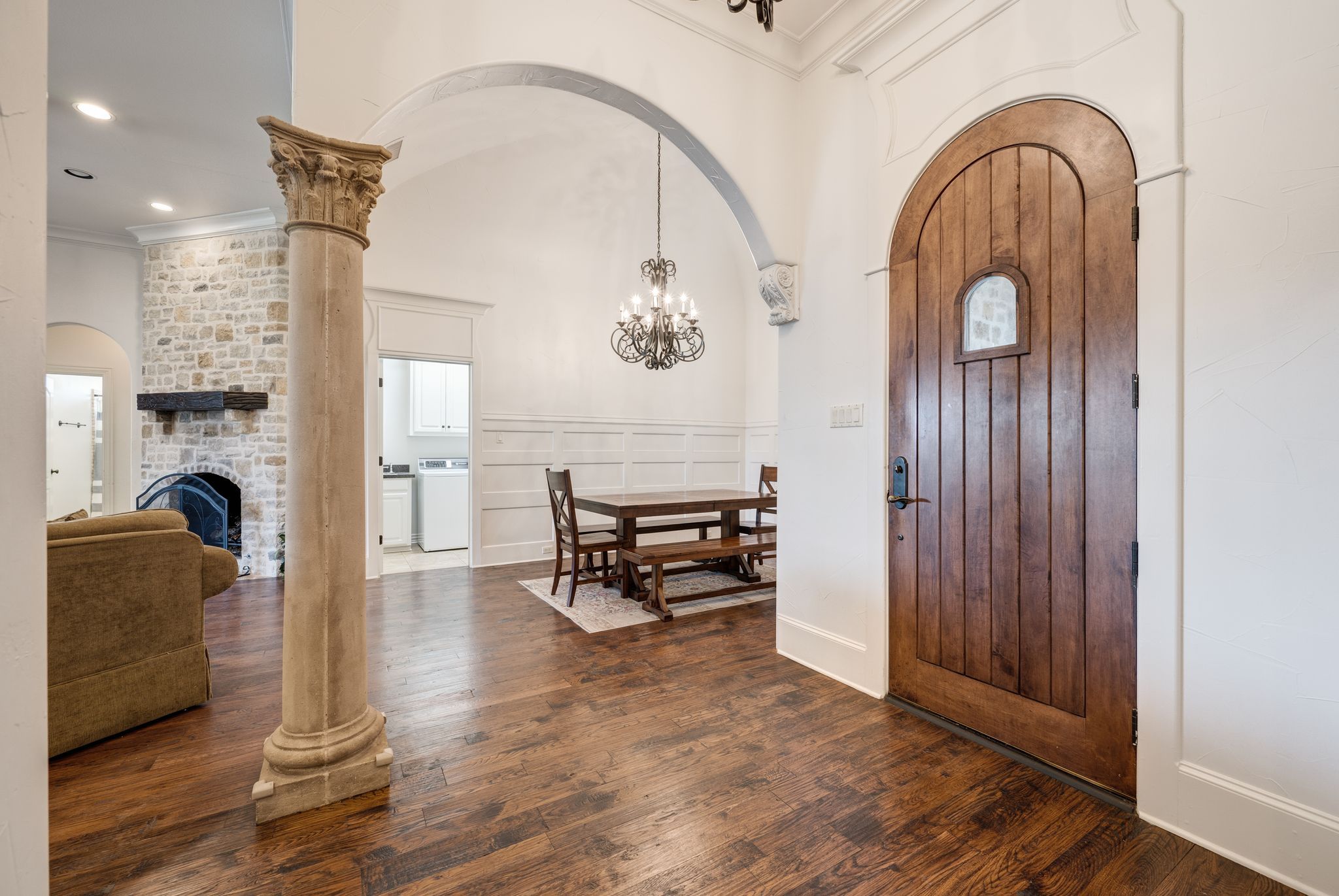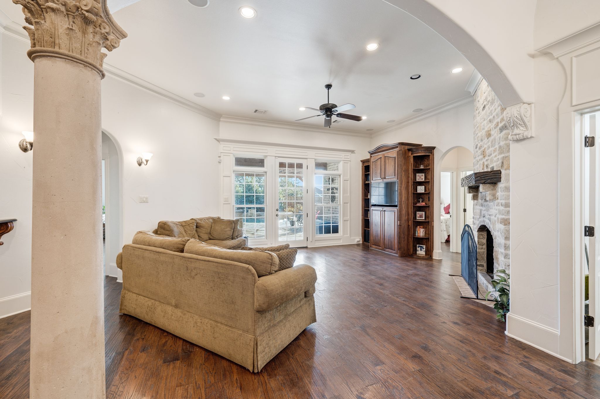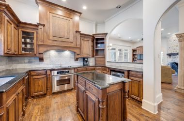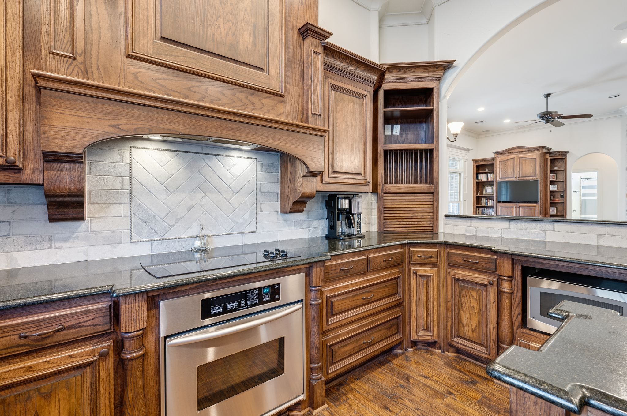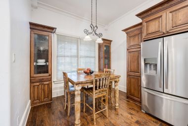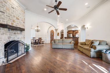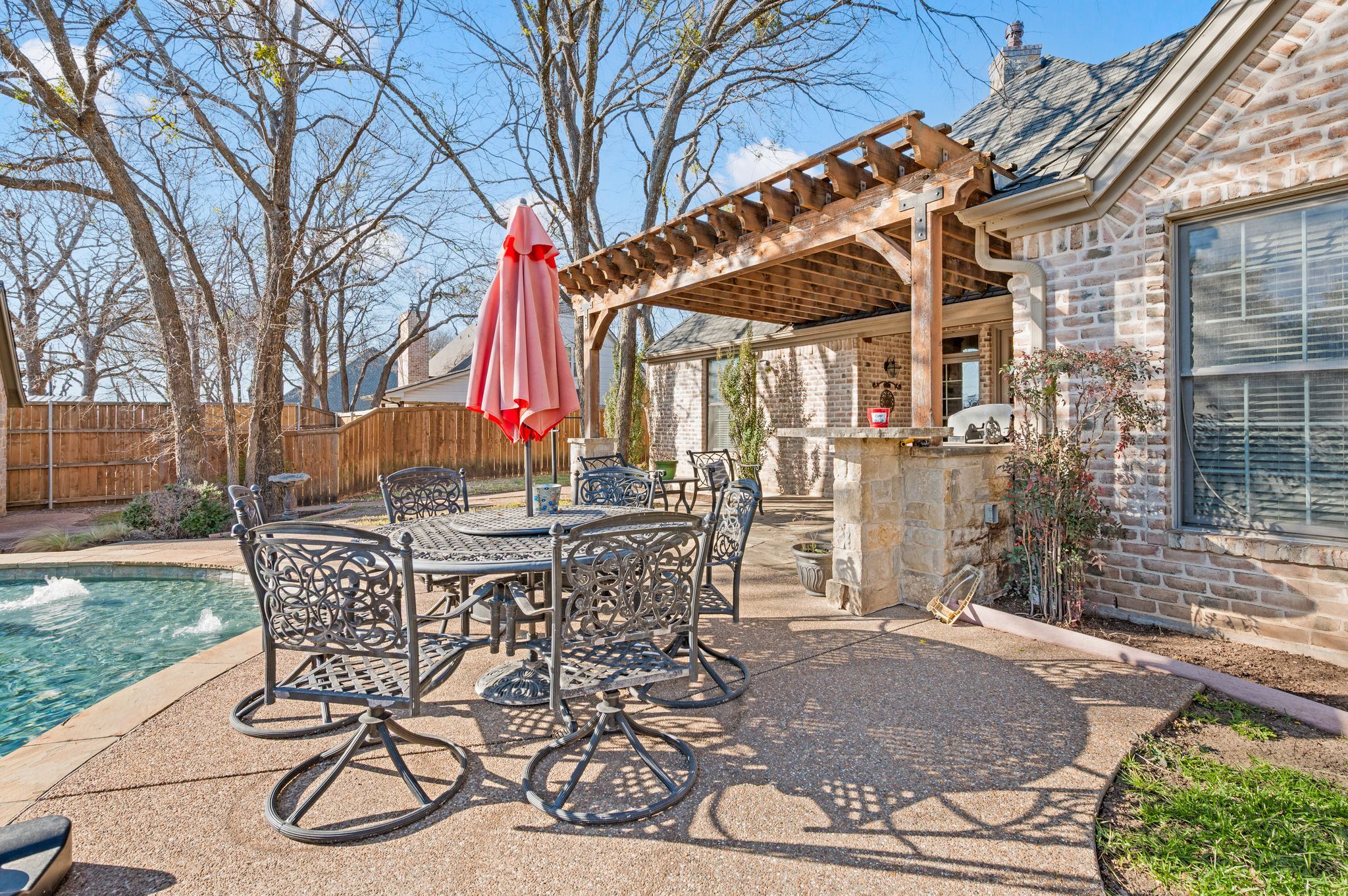OLD WORLD TUDOR STYLE HOME WITH CLASS GALORE. This immaculate, completely custom, one-of-a-kind residence was built by a true master craftsman, with no detail overlooked. rom the moment you arrive, a stamped concrete circular drive, stunning landscaping, and cozy gas-burning lanterns create an unforgettable first impression. Architectural details elevate the exterior, including copper standing-seam metal accents, custom wood garage doors, and custom half-pipe copper gutters with copper round downspouts. The roof features BP Manoir Lifetime Class 3 shingles, offering both timeless beauty and long-term durability. Inside, soaring ceilings enhance the sense of grandeur, complemented by hand-scraped hardwood and tile flooring, deluxe custom trim, and beautifully crafted cabinetry throughout. Granite countertops are featured in every space, while the kitchen shines with stone backsplash, stainless steel appliances, and custom finishes designed for both function and style. The living area is anchored by a stunning rock fireplace with a distressed custom mantle and framed by expansive windows that overlook the backyard oasis. Just outside, an inviting outdoor living center opens to a resort-style saltwater pool and hot tub, creating a private retreat ideal for entertaining or relaxing. Adding to the home’s versatility is a separate structure complete with air conditioning and a bar—perfect for a pool house, guest space, hobby room, or private retreat. This exceptional property blends timeless Old World character with modern comforts and resort-style living in a peaceful Bridgeport setting. Truly unique and meticulously crafted, 2208 Fair Oaks is a rare offering that must be experienced in person.