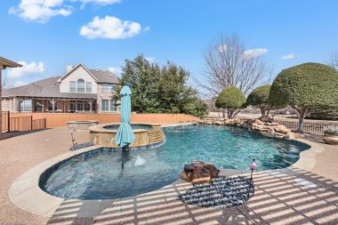 This backyard delivers everything buyers want in a Keller TX home with pool — privacy, style, and space to entertain friends and family.